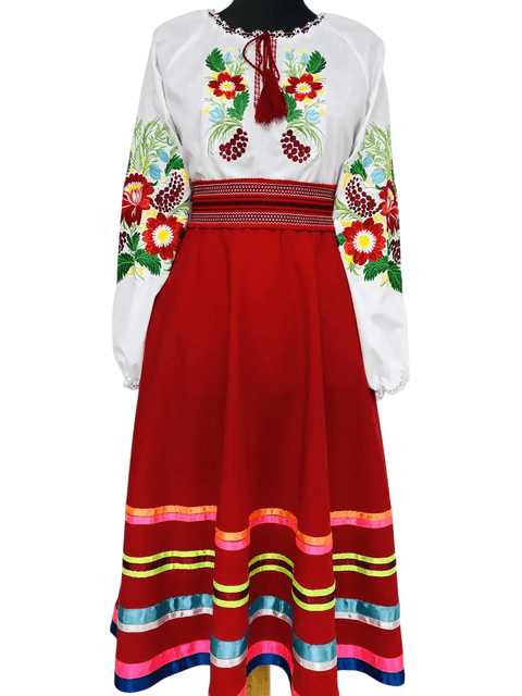 Вишите жіноче плаття червоне + пояс-косичка