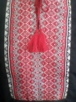 Сорочка чоловіча чорного кольору, оформлена червоним орнаментом з тканого полотна. Довгий рукав застібається на кнопку. Можна замовити сорочку з короткими рукавами. При замовленні вказуйте ваші розміри: обхват грудей, обхват бедер та живота, також довжину рукава.Тканина: чорний льон.