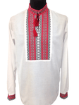 Сорочка чоловіча оформлена червоно-чорним орнаментом з тканого полотна. Довгий рукав застібається на кнопку. Можна замовити сорочку з короткими рукавами. При замовленні вказуйте ваші розміри: обхват грудей, обхват бедер та живота, також довжину рукава.Тканина: Батист.