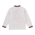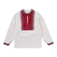 Сорочка для хлопчика класичного крою з довгими рукавами та комірцем стійкою.Оформлена червоною нашивкою спереду, вздовж комірця та на рукавах.Рукави застібаються на кнопки.Також можна замовити сорочку з короткими рукавами.
