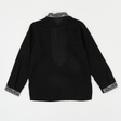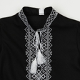 Вишита сорочка для хлопчика класичного крою з довгими рукавами та комірцем стійкою.Оформлена вишивкою спереду, вздовж комірця та на рукавах (вишивка хрестиком білою ниткою).Рукави застібаються на кнопки.Також можна замовити сорочку з короткими рукавами.Тканина: чорний льон.