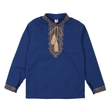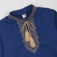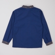 Вишита сорочка для хлопчика класичного крою з довгими рукавами та комірцем стійкою.Оформлена вишивкою (бежевий хрестик) спереду, вздовж комірця та на рукавах.Рукави застібаються на кнопки.Також можна замовити сорочку з короткими рукавами.Тканина: синій поплін.