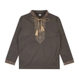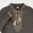 Вишита сорочка для хлопчика класичного крою з довгими рукавами та комірцем стійкою.Оформлена вишивкою (бежевий хрестик) спереду, вздовж комірця та на рукавах.Рукави застібаються на кнопки.Також можна замовити сорочку з короткими рукавами.Тканина: зелений поплін.