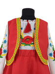 До складу костюма входять: сорочка з вишивкою гладдю та спідниця з жилеткою, оздоблені кольоровими стрічками.