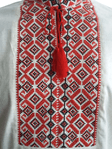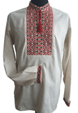 Сорочка чоловіча оформлена червоно-чорною вишивкою хрестиком. Довгий рукав, застібається на кнопки. Можна замовити сорочку з коротким рукавом. При замовленні вказуйте ваші розміри: обхват грудей, обхват бедер та живота, також довжину рукава.Тканина: сірий льон.