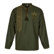 Сорочка чоловіча оформлена зеленою вишивкою (хрестик). Довгий рукав, застібається на кнопки. Можна замовити сорочку з коротким рукавом. При замовленні вказуйте ваші розміри: обхват грудей, обхват бедер та живота, також довжину рукава.