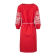Вишите жіноче плаття червоне з поясом-косичкоюВишите жіноче плаття, виконане хрестиком, — це поєднання традиційної української вишивки та виразного сучасного образу. Насичений червоний колір символізує енергію, силу та жіночність, роблячи сукню ефектною й незабутньою.Плаття має рукави 3/4, що додають легкості та комфорту, а пояс-косичка, який входить до комплекту, красиво підкреслює талію та формує завершений силует. Костюмна тканина добре тримає форму, виглядає охайно та підходить як для святкових подій, так і для особливих випадків.Виріб виготовляється індивідуально під замовлення, що гарантує ідеальну посадку по фігурі.Характеристики:- Техніка вишивки: хрестик