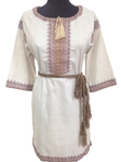 Жіноче плаття оформлене вишивкою ткане полотно з трьохчетвертним рукавом.Вартість сукні вказана без пояса.Тканина: льон.Вироблено в Україні.